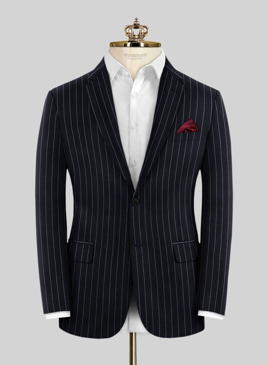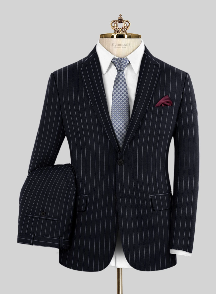 Slip on the understated artistry with our Bristol Deep Blue Rope Stripe Suit that channels the exclusive charm in a prestigious way. Furthermore, our suit is tailored from super 120’s pure wool fabric, which brings lean, supple textures that leads to pleasing softness with a striped pattern over a blue tinge. Further, the exquisitely tailored suit committed to ooze sophistication from head to toe with chic silhouettes creates a charming arrival to the prominent venues.