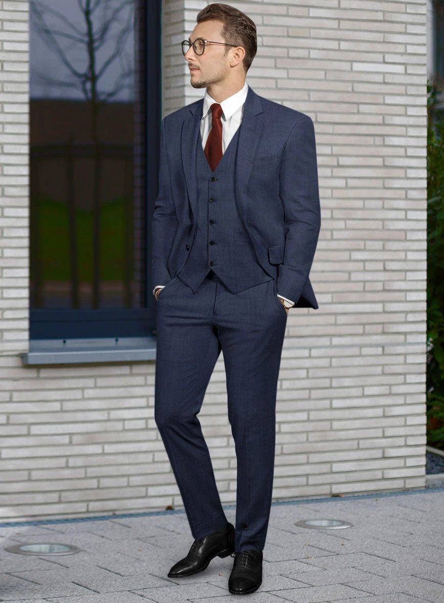 Make a classy appearance at your next wedding or event with our Bristol Navy Birdseye Suit, showcasing your style. Crafted from pure wool fabric, this suit features a solid blue pattern, making it a bold choice that keeps you looking sharp and comfortable all day. Upgrade your wardrobe with this suit for a unique and eye-catching look.