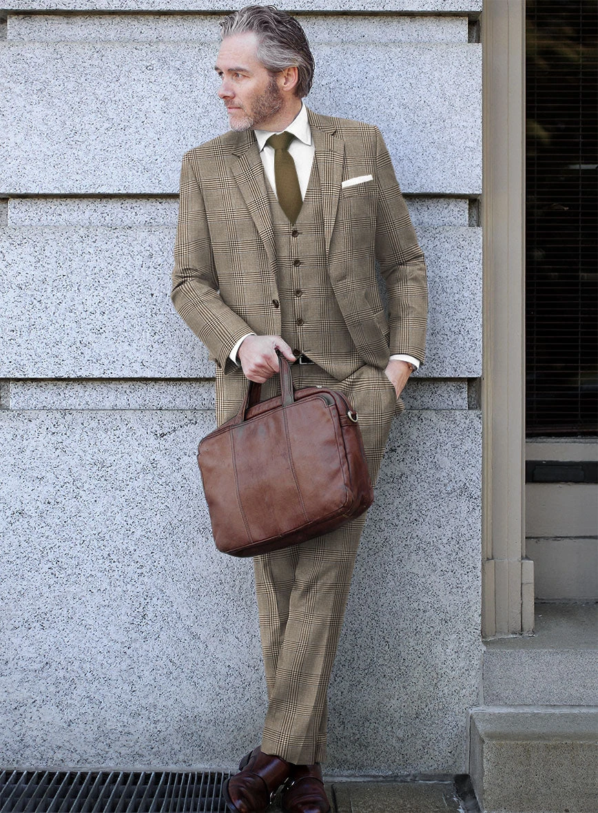 With a perfect patterned finish, our Italian Murano Ejan Brown Wool Linen Silk Suit will lend your office wear collection a bit more punch. It brings together the best of all three elements: wool’s durability, silk’s luxury, and linen’s texture, to create a lightweight and breathable suit. Brown suits are the perfect way to add a subtle difference to your smart attire, and the plaid design boasts exquisite detailing that celebrates everyday opulence at its finest. Whether you’re attending a formal event, a wedding, or a party, it allows you to stand out from the crowd without being too flashy.
