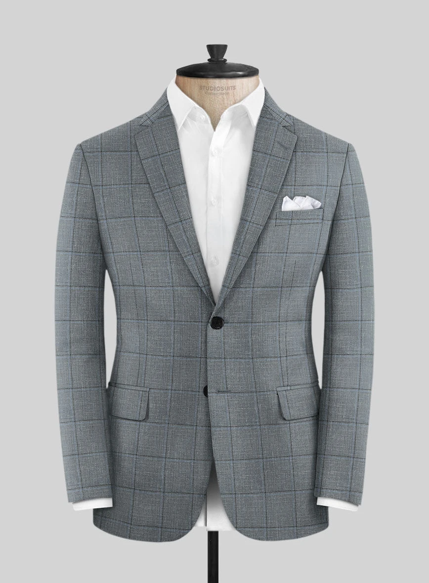 Embrace your striking look as you walk down the aisle in this refined Italian Murano Lig Gray Wool Linen Silk Jacket designed to leave a lasting impression. Crafted from a high-quality blend of wool, linen, and silk, this jacket features stunning, bold gray plaids that add a vintage touch to your appearance. With this jacket, you can effortlessly change your refined style and grab attention without appearing too flashy.