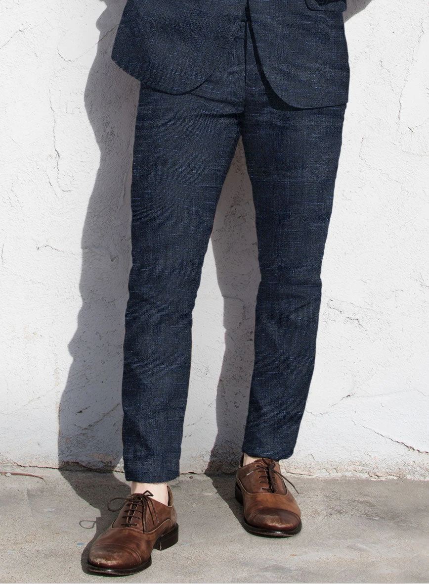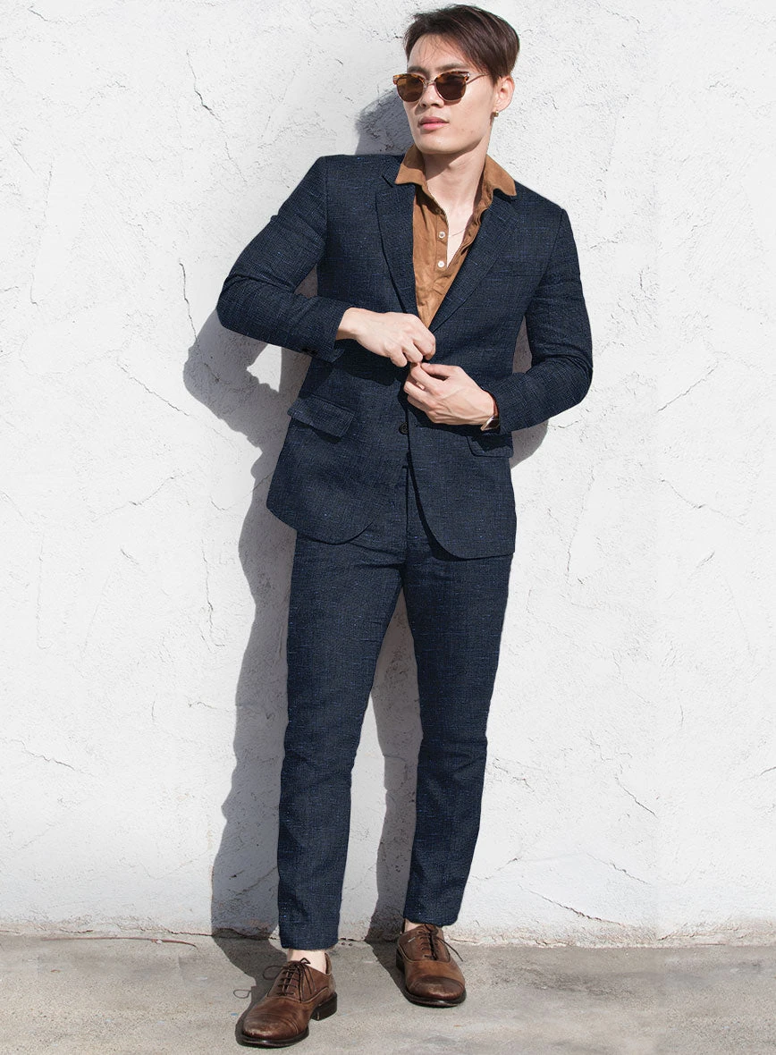 Exhibit a devotion to finesse with the addition of our Italian Prato Blue Chambray Linen Suit. However, cut from a pure linen fabric that gives off a thin, lighthearted vibe with an airy feeling that elevates breathable features, a solid design over blue tones hints at a touch of royalty. And then, our suit features an imperical perspective aligning with incredible tailoring that brings a laidback appeal. Well-cut suit tones down for a formal look, making an excellent all-rounder concerning business or weekend styles.
