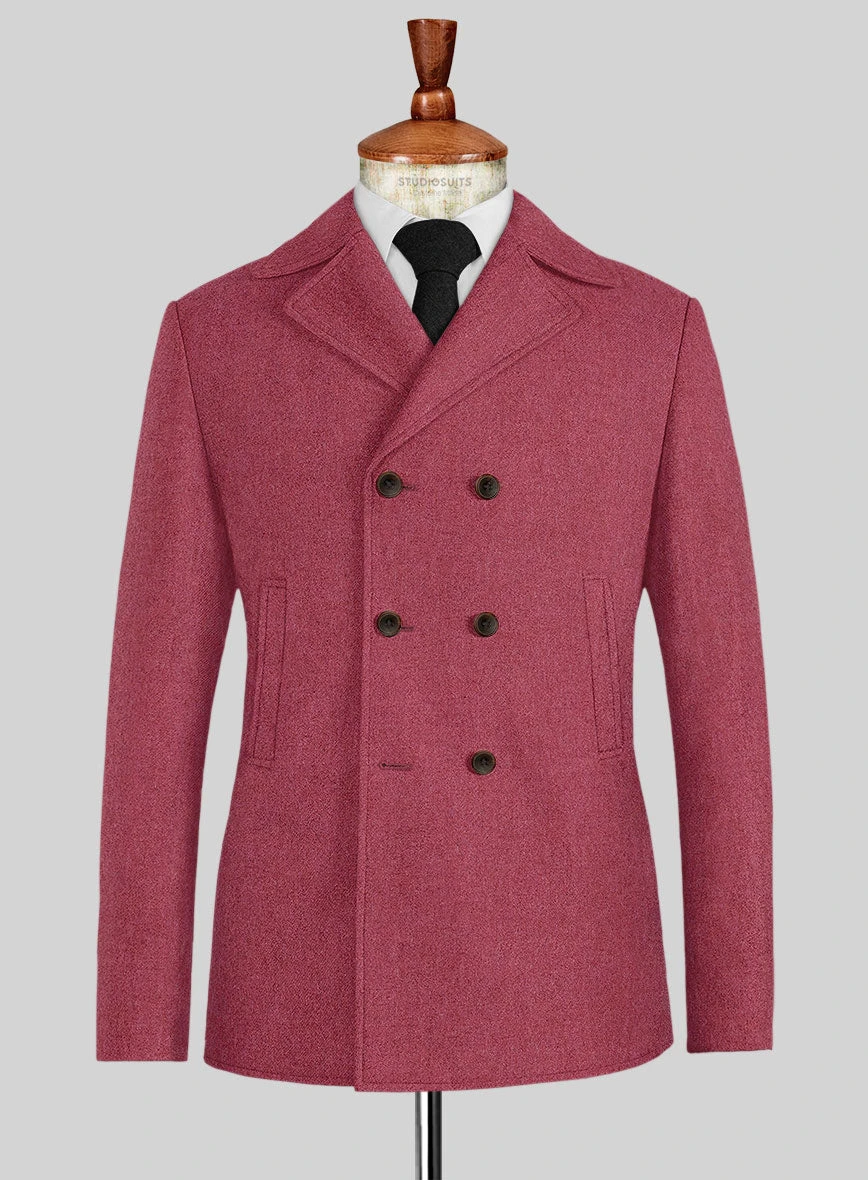 Elevate your formal attire with the Naples Venetian Pink Tweed Pea Coat, which offers a modern look with timeless appeal. Crafted from pure wool, this coat will keep you warm and stylish. The solid pink color makes a bold statement, enhances your sense of style, and creates the perfect formal vibe.