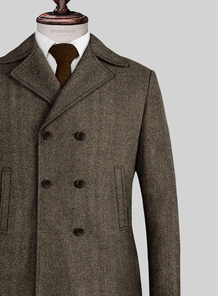 Enhance your ensemble with an extra dose of style, courtesy of our Naples Wide Herringbone Brown Tweed Pea Coat. Crafted from pure wool fabric, it guarantees both warmth and comfort. Featuring a rich brown colorway and a wide herringbone weave, it pays homage to the enduring heritage style that has truly stood the test of time. Whether you’re gracing the halls of a winter wedding, celebrating a cherished christening, or attending any special occasion, this pea coat is your gateway to effortless sophistication and unshakable confidence.