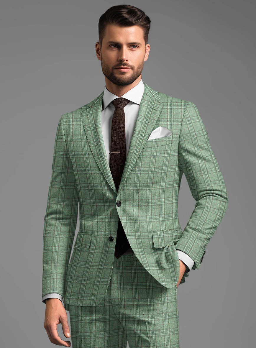 Step into the forefront of fashion with our Noble Green Check Wool Silk Linen Jacket. Meticulously tailored from a blend of wool, silk, and linen, it ensures a luxurious feel and unparalleled comfort. The green base serves as an elegant canvas, allowing the red and brown plaids to emerge with depth and opulence. This not only adds visual intrigue but also infuses a sense of dynamic energy, making it the perfect choice for those who aspire to stay on the cutting edge of style. Whether your agenda calls for polished office attire or a casually chic weekend look, this versatile jacket rises to the occasion, providing an ideal response to meet your sartorial demands.