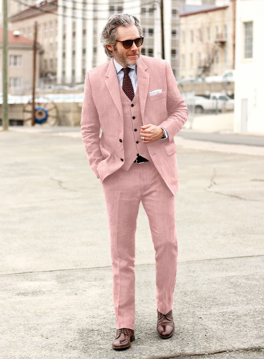 In a world obsessed with grayscale norms, be the burst of color. Embrace the vivacity of pink by donning our Pinkstone Linen Suit. Painstakingly crafted from breathable linen fabric, keeping you cool in warm weather. Its ravishing pink colorway with a solid texture is an insignia of your individuality, a symbol of your style sovereignty. Whether you’re hitting up weddings, lively cocktail bashes, or heading out for a dreamy Valentine’s rendezvous, this suit is your ride-or-die for a fab fashion escapade.